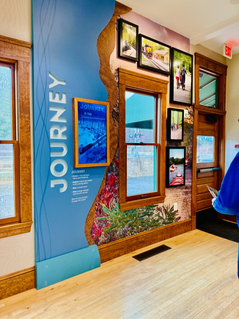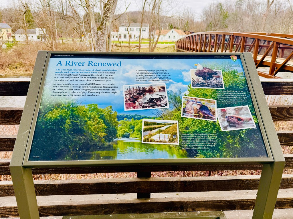 Our first stop was the Boston Mill Visitor Center at Cuyahoga, our 15th National Park! It was very interesting in that this National Park seems to focus more on the industrial importance of the area between Cleveland and Akron vs. nature/geological attractions. This visitor center is built right next to the Cuyahoga river and a railroad, and we were quite surprised to see a ski resort right across the street with people skiing.