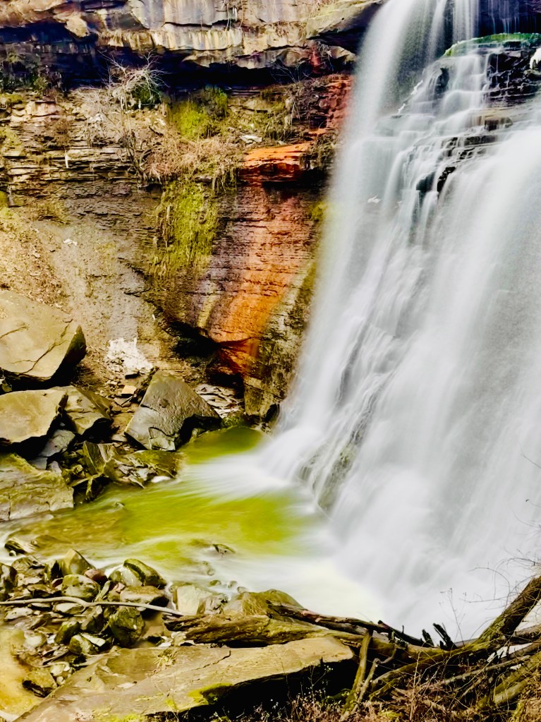 We then headed to Brandywine Falls. They have a nice boardwalk down to a viewing platform. Even though it was a mild day, there were some icicles clinging to the rock of the falls.