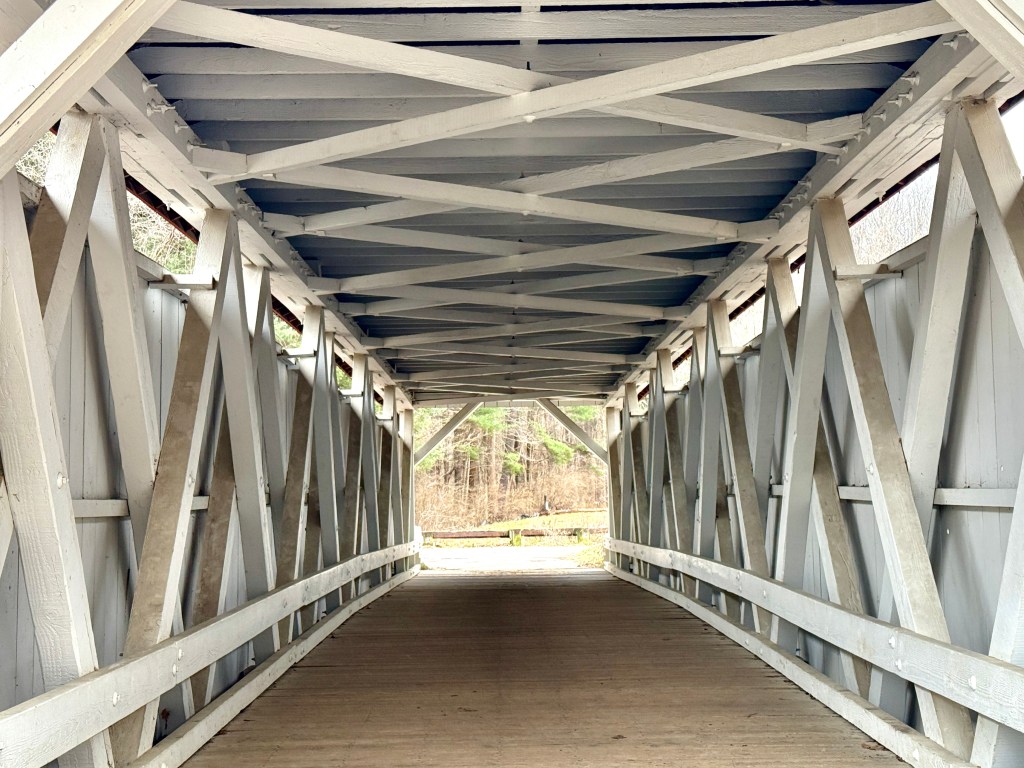 Next, we saw the Everett Road Covered Bridge. We parked in the small lot adjacent to the path leading to the bridge, and regretted it as soon as we stepped out of the car. There was some crop planted in the adjacent field that was pretty, but had quite a foul odor – no idea what it was!
