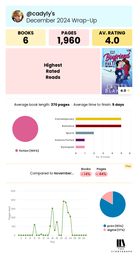 This was a super cute Christmas story that follows 3 siblings and their partners gathering at their childhood home for the holiday. Each of the siblings has a big secret they have been keeping from their normally close-knit family, and Mom Jenny is anxious to have one last perfect Christmas before everything changes. It had all of the feels of a cozy Hallmark-style movie. I enjoyed the multiple POVs and how each character was genuinely interested in the feelings of their family members and in resolving conflict in a respectful and peaceful manner. We don’t often get to see healthy conflict resolution in the media we consume. Each of these secrets had the potential to cause some serious emotional damage, but the characters approached the revelations seeking to understand and heal instead of blame and reject.