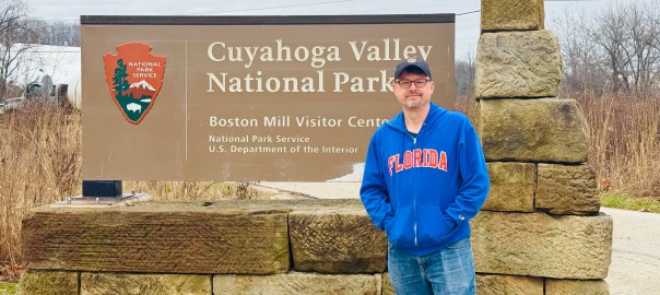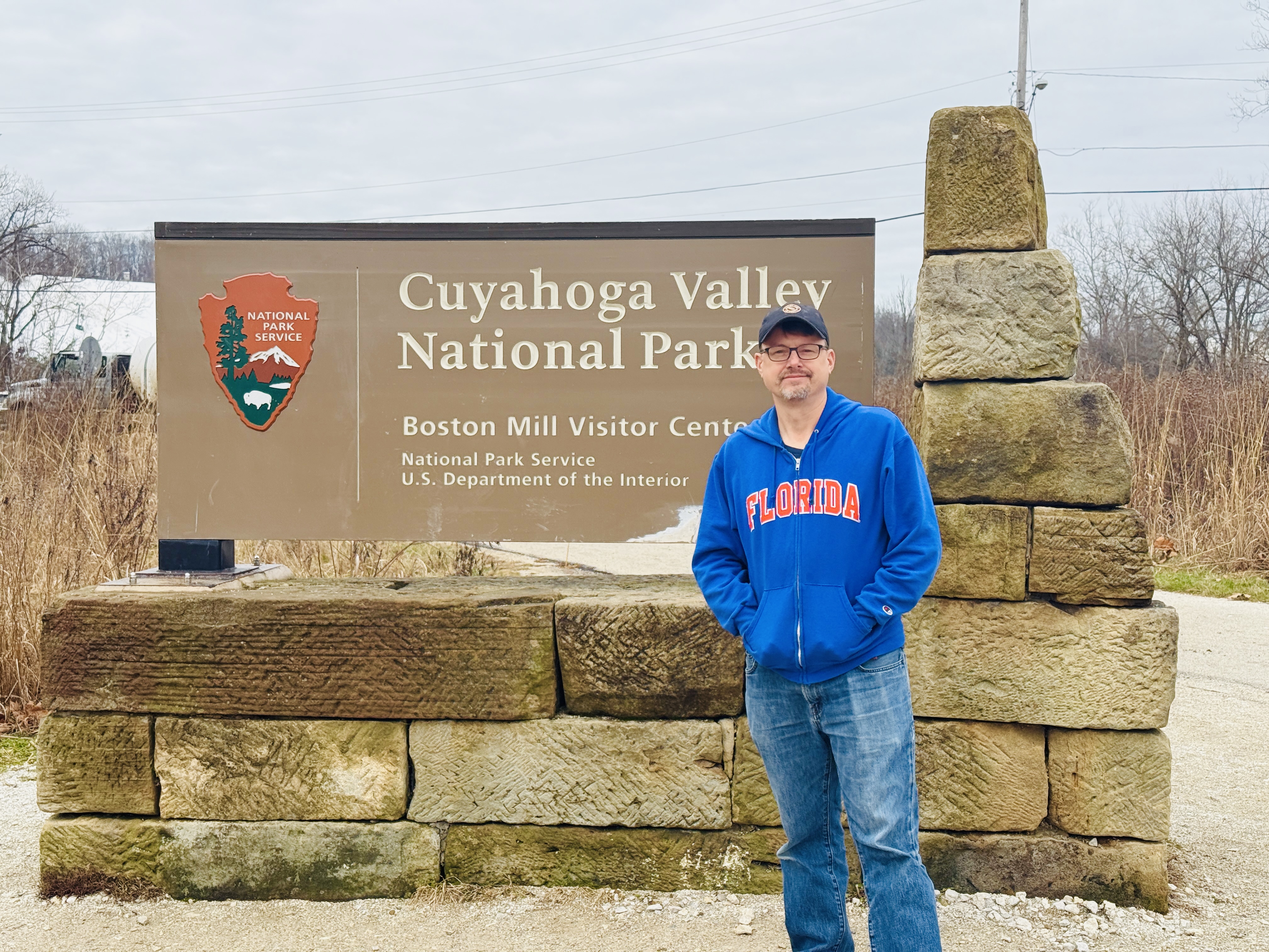 Donald standing in front of the Cuyahoga Valley National Park sign