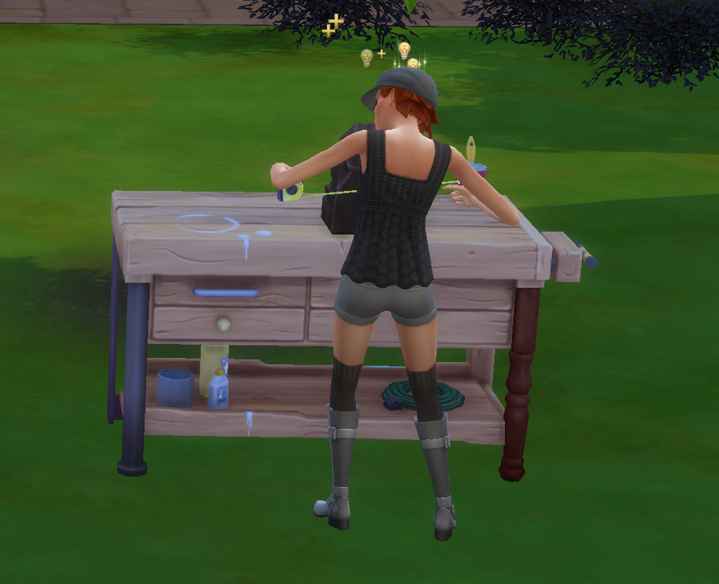 • 🪵 Craft two sculptures on the woodworking table (Linden’s handiness skill is … a work in progress)