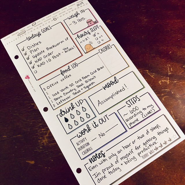 These cute daily log sheets are part of Kristin’s line at Michael’s, and I had a really fun time filling it out. It made my very boring day seem important and allowed me to celebrate my mundane daily #adulting accomplishments. Like keeping up with the dishes. I even took all the recycling out of the house and into the bin.