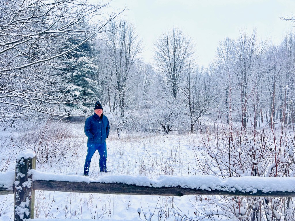 We love taking photos and recognize the importance of capturing our memories. We are trying to get better at documenting our adventures (and taking more videos!), so we played a bit with slow-mo mode. The clip below shows Donald shaking a branch to have some snow fall on him. This is towards the end of our walk, and you might be able to tell that the branches now have a good couple inches of snow on them – much more than when we began our walk!